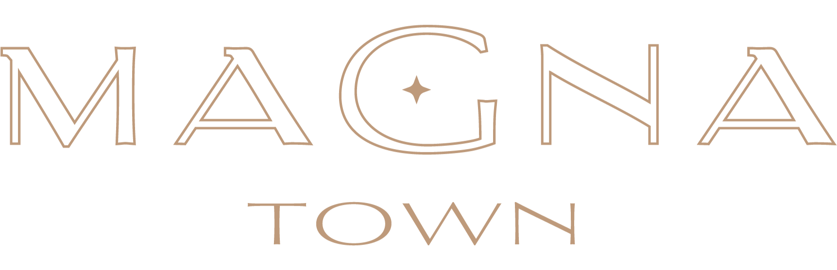 Isotipo de Magnatown con letras doradas y fondo negro.